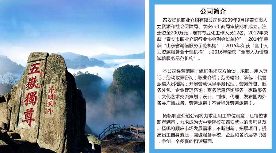 【招聘公告】泰安揚帆職業介紹有限公司某國有企業招聘簡章